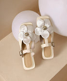 Questi sandali con maxi fiore decorativo e cinturino regolabile uniscono romanticismo e raffinatezza.