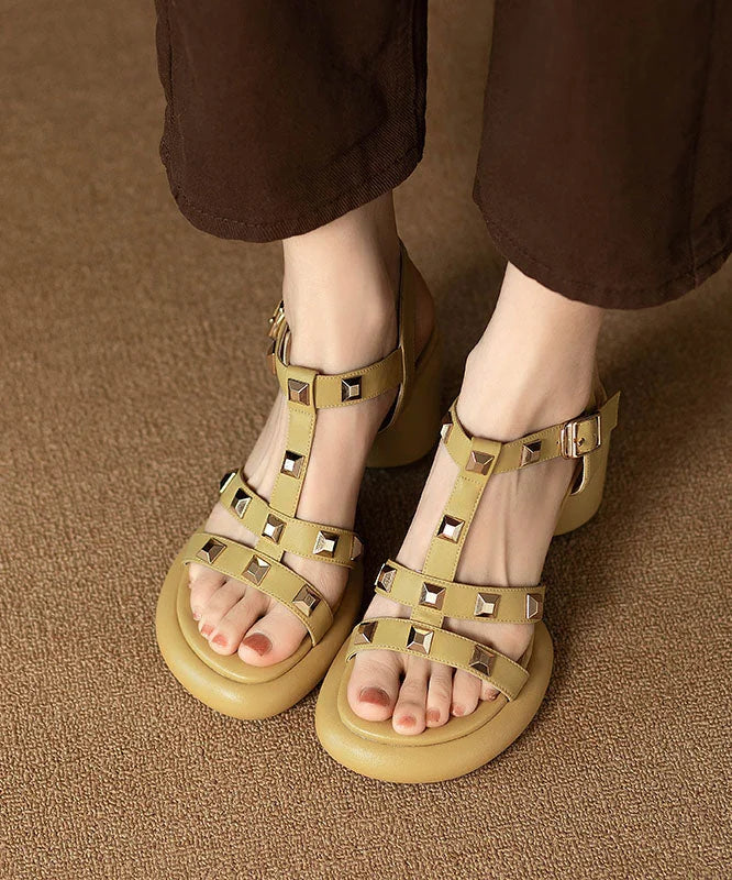 Questi sandali con tacco largo e dettagli borchiati sono perfetti per aggiungere carattere e stile a qualsiasi outfit.