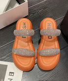 Questi sandali platform con fasce tempestate di strass uniscono comfort e brillantezza in un design audace.