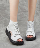 • Design: Punta aperta, dettagli laterali intagliati, altezza alla caviglia