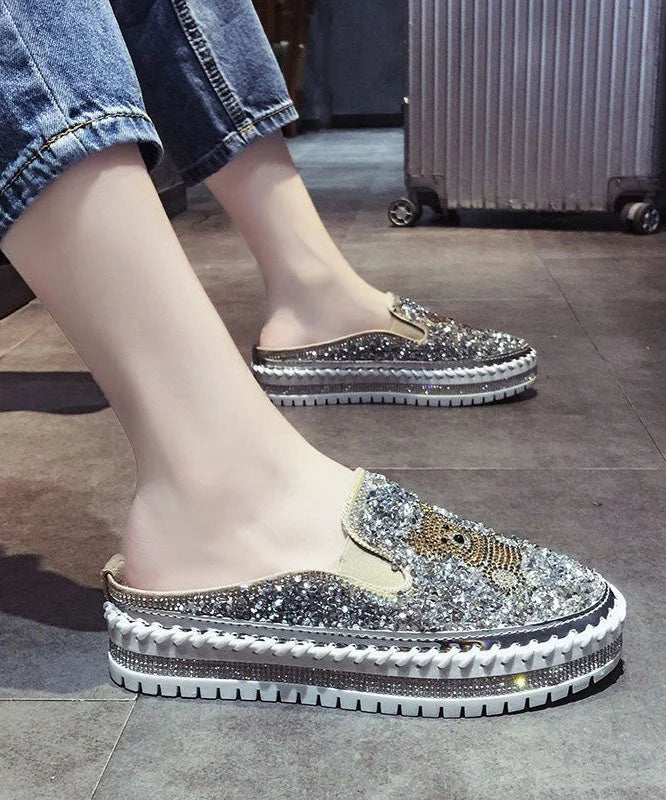 Queste slip-on glitterate con motivo orsetto sono perfette per chi ama distinguersi con stile e un pizzico di ironia.