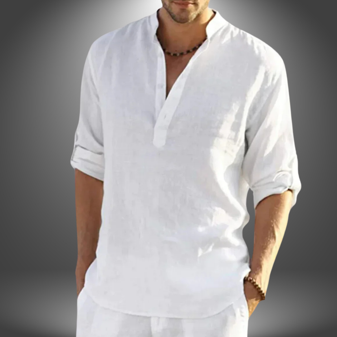 Questa camicia in lino dal taglio casual è ideale per giornate calde, viaggi e aperitivi sul mare.