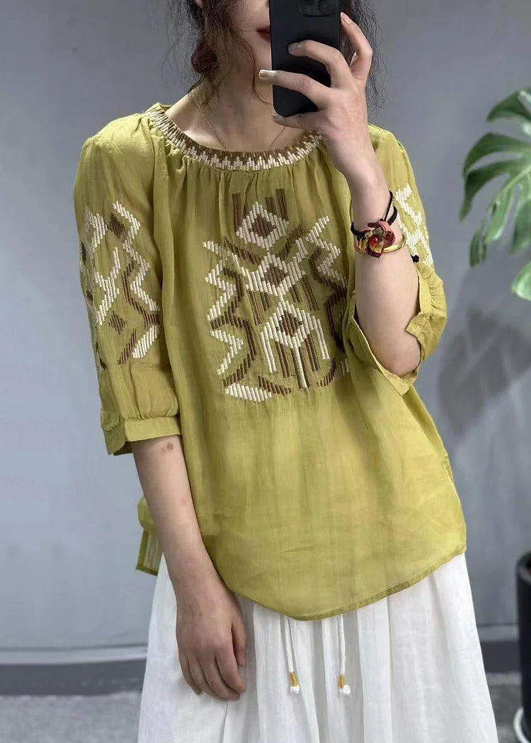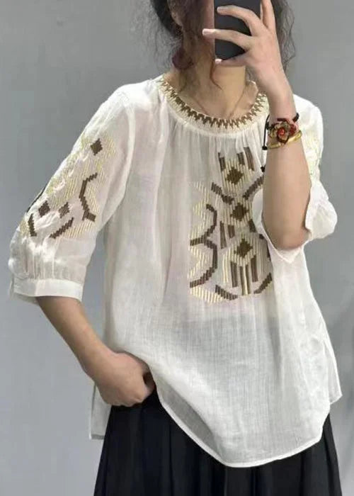 Questa camicetta dal taglio morbido con ricami geometrici dona un tocco boho e artigianale al tuo look.