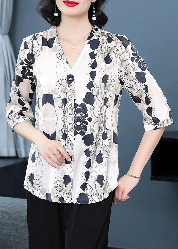 Questa blusa in raso con stampa floreale è la scelta perfetta per un look sofisticato ma facile da indossare.