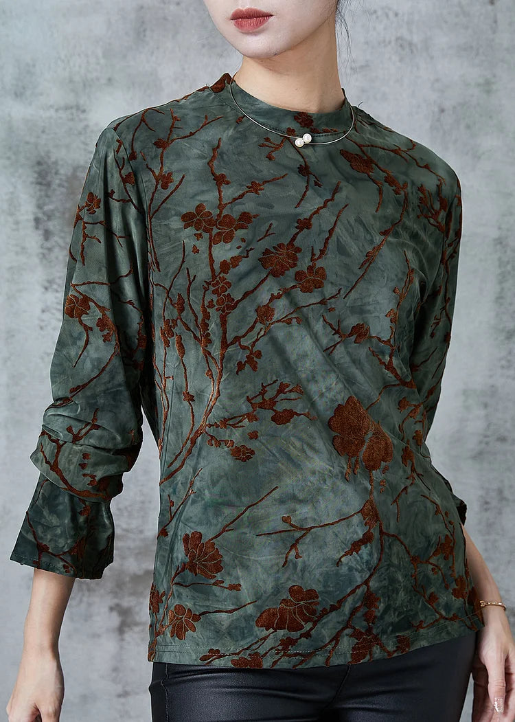 Questa blusa a maniche lunghe con stampa floreale in velluto regala un look sofisticato e artistico.