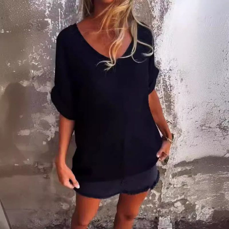 • Stile Casual: Design minimal con scollo a V e maniche risvoltate