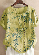 Questa maglia in lino con stampa botanica è perfetta per chi ama la leggerezza e i dettagli originali.