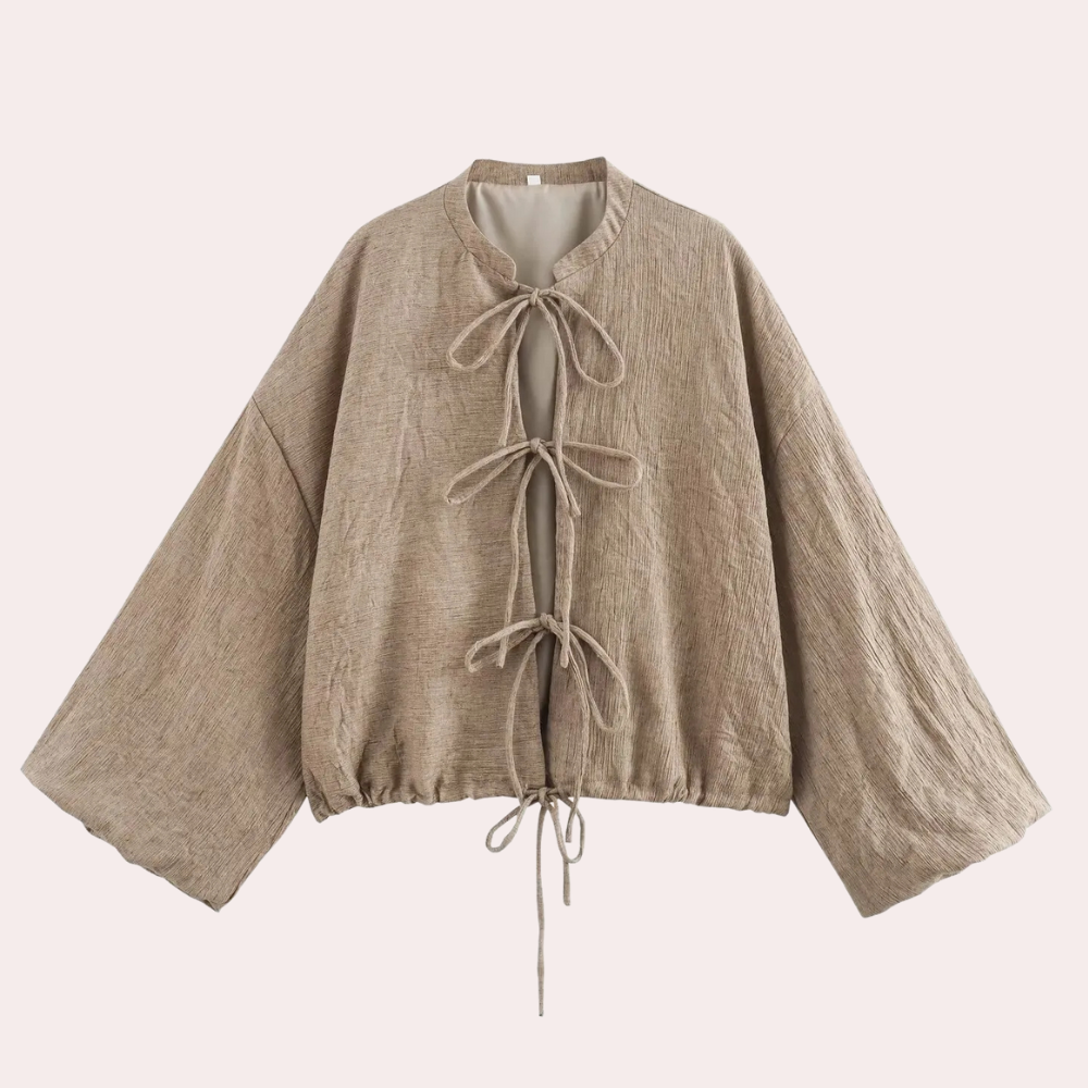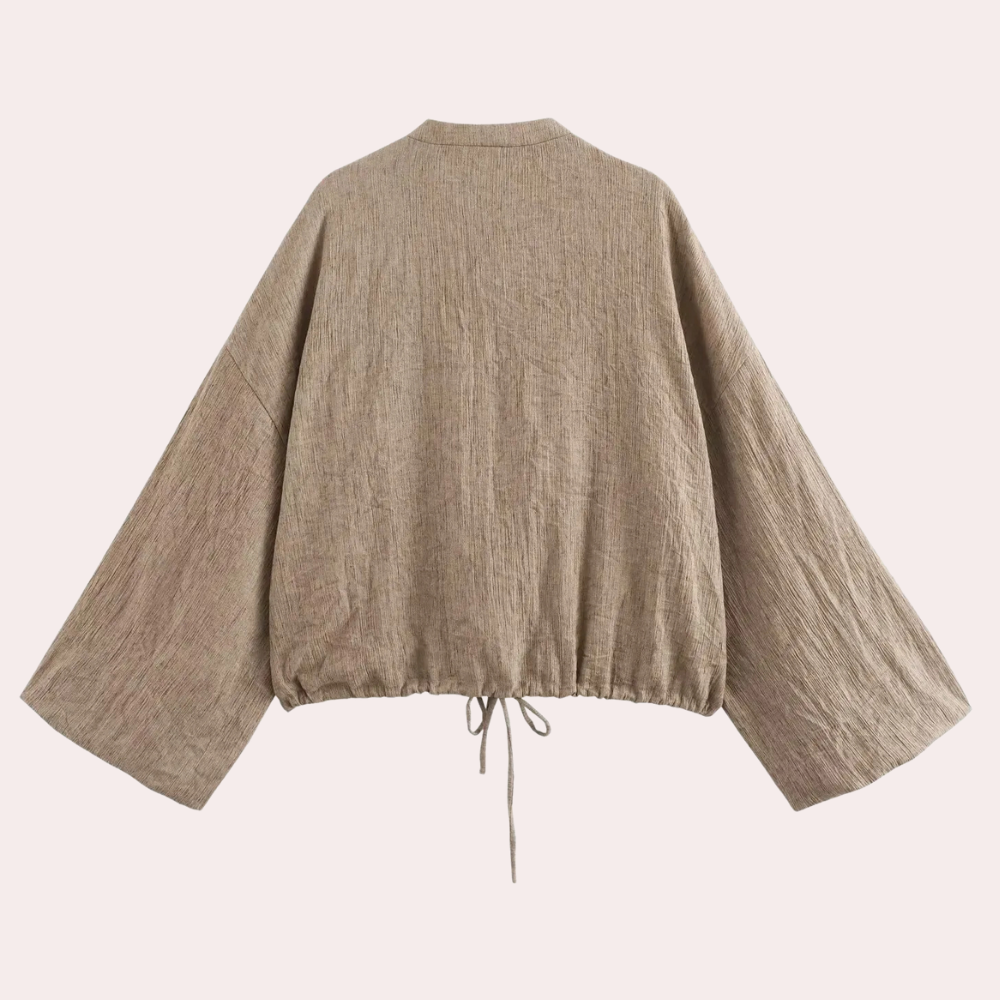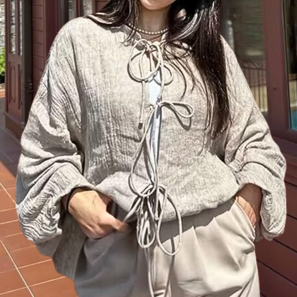 Questa blusa in lino con lacci regolabili è l’ideale per un look raffinato e rilassato.