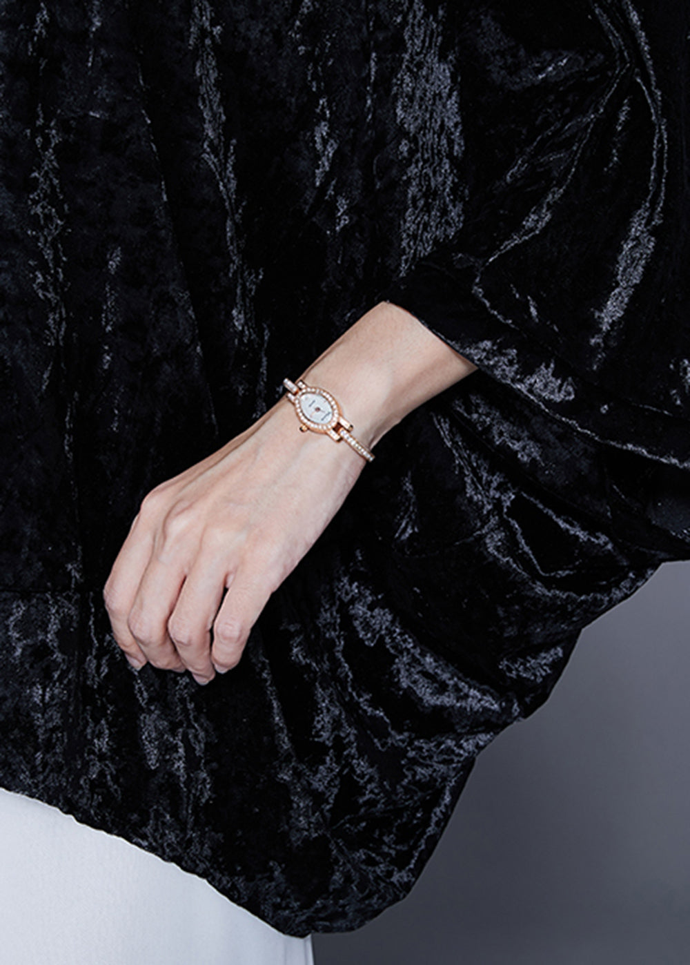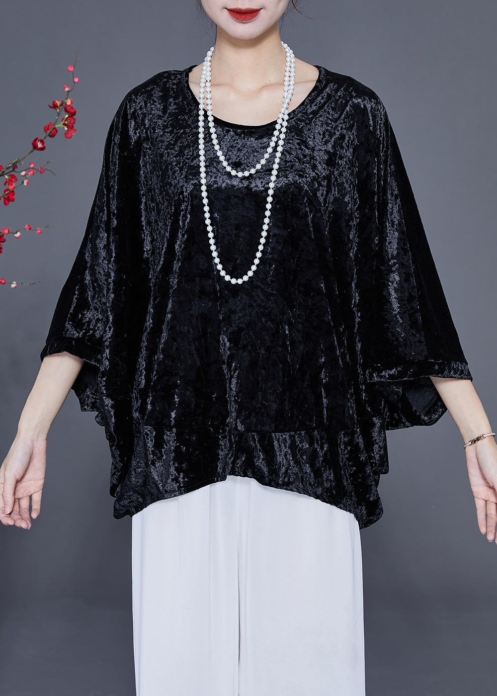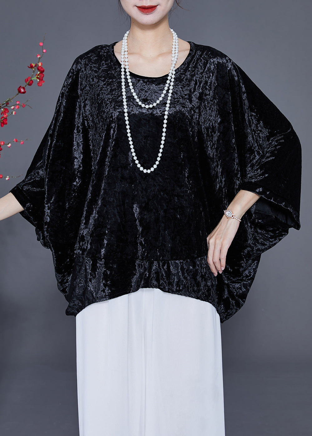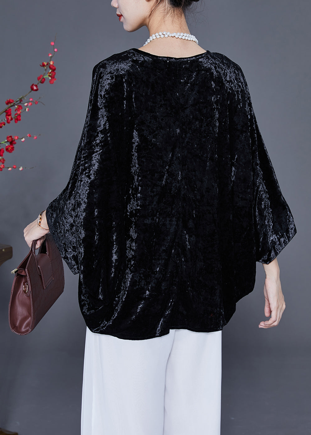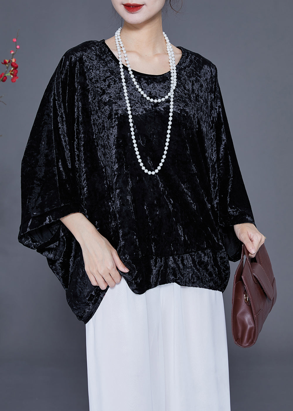 Questa blusa in velluto nero, morbida e brillante, dona un tocco raffinato a qualsiasi outfit.