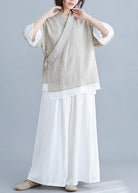 Questa blusa stile kimono in misto lino ha una silhouette morbida e naturale, con incrocio frontale e laccio laterale che richiamano l'estetica orientale.