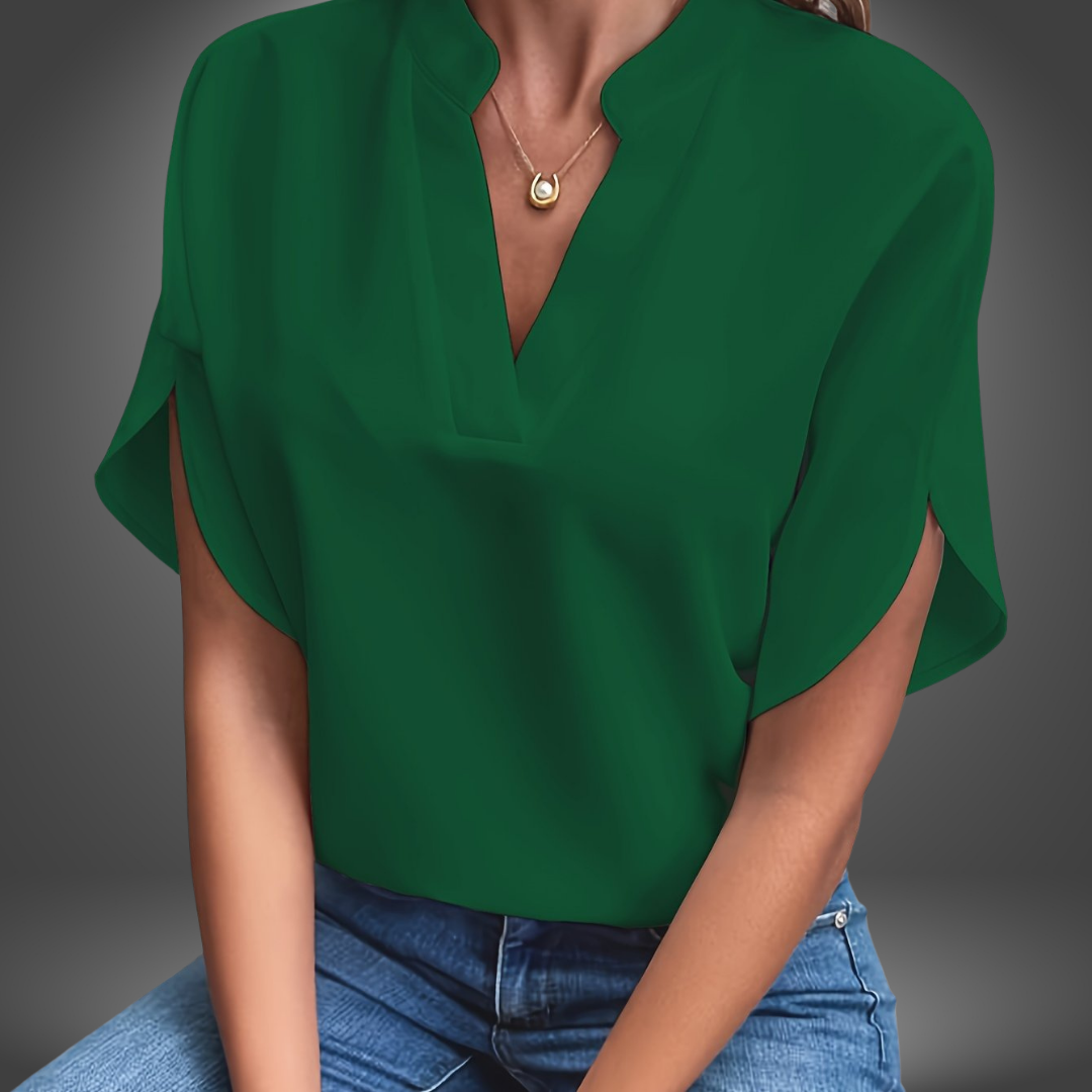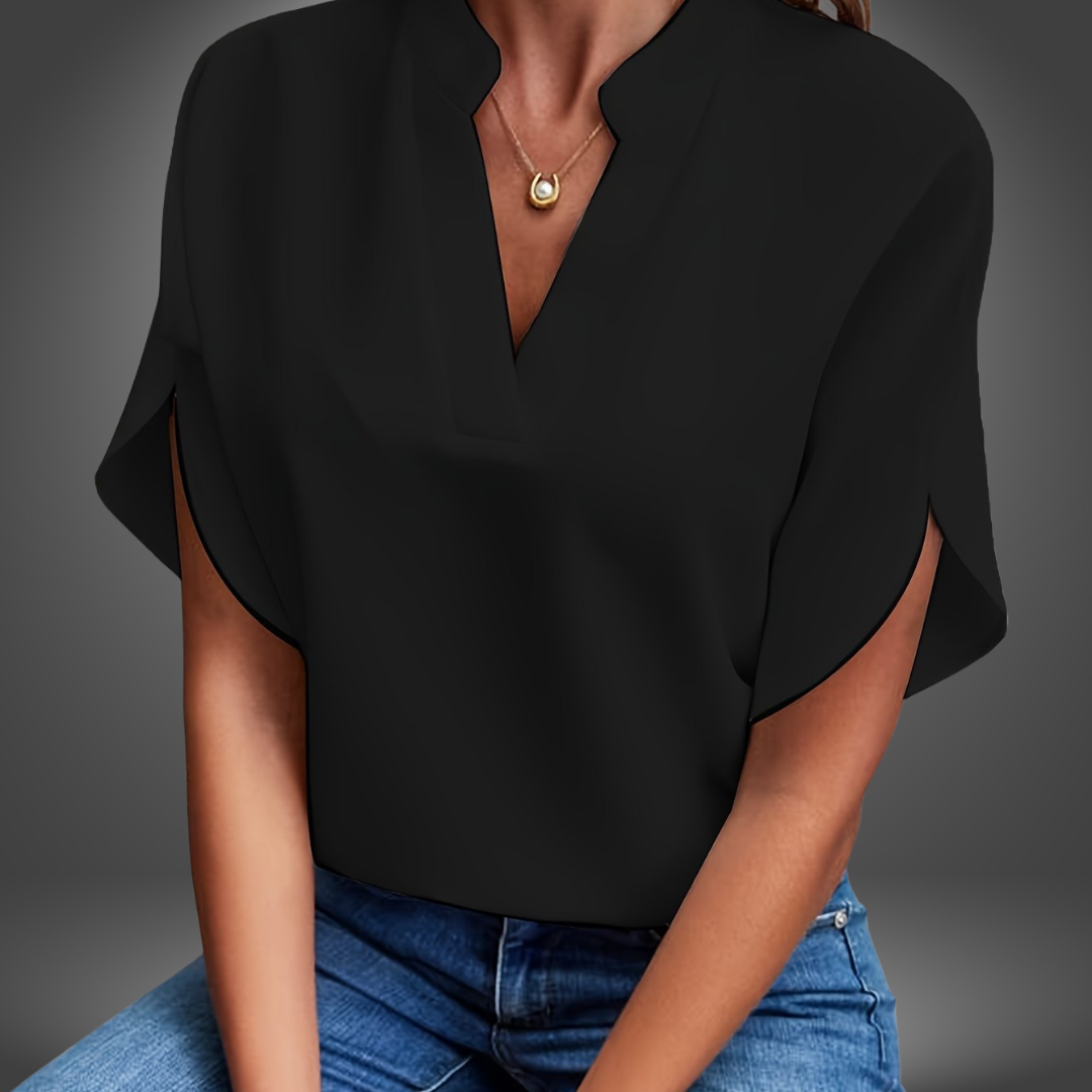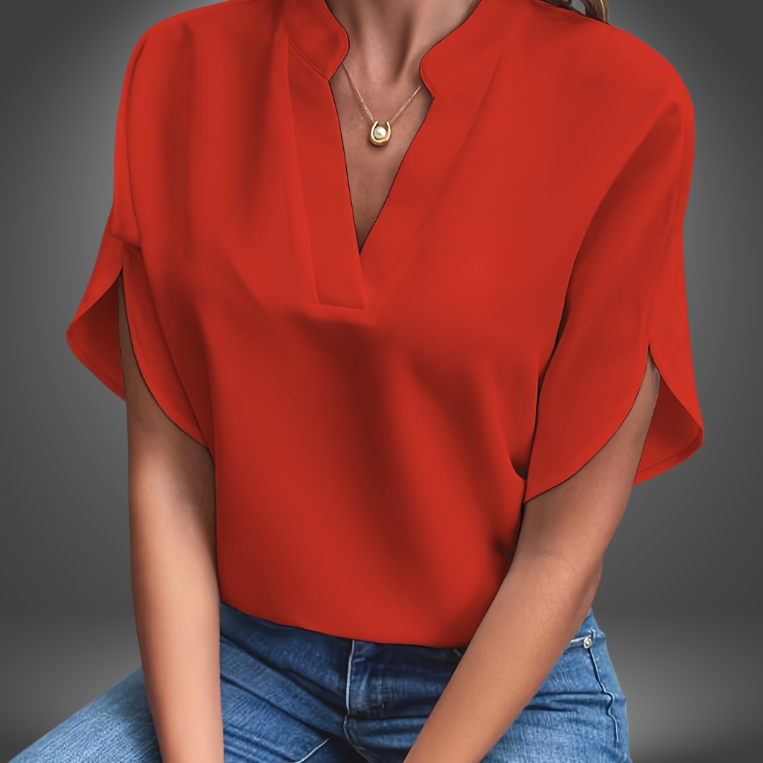 Questa blusa in stile minimal con scollo a V dona un tocco sofisticato al tuo look quotidiano.