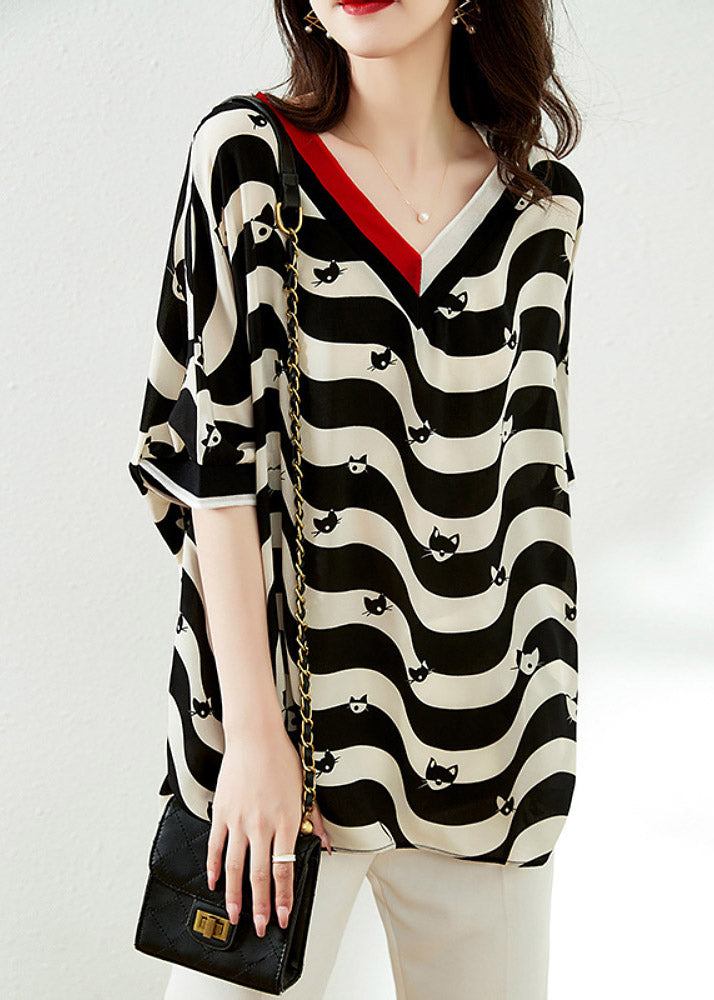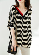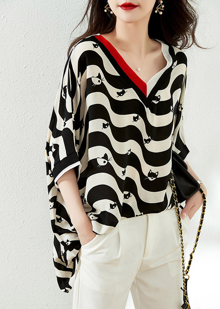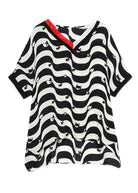 Questa blusa oversize con motivo grafico a onde e gatti è la scelta perfetta per chi ama uno stile audace ma comodo.