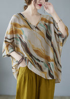 Questa blusa oversize con stampa astratta è perfetta per chi ama uno stile boho e naturale.