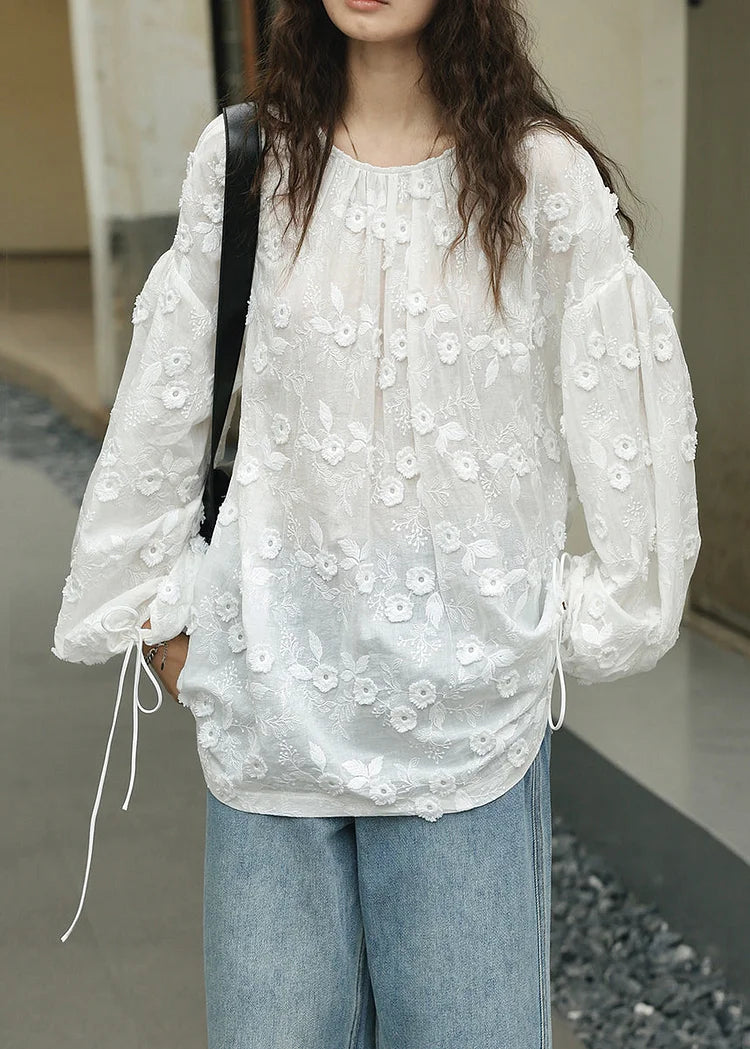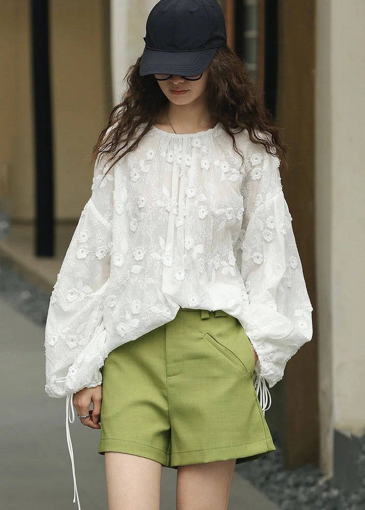 Questa blusa bianca ricamata è perfetta per un tocco femminile e arioso, da indossare sia con shorts che con jeans o gonne.