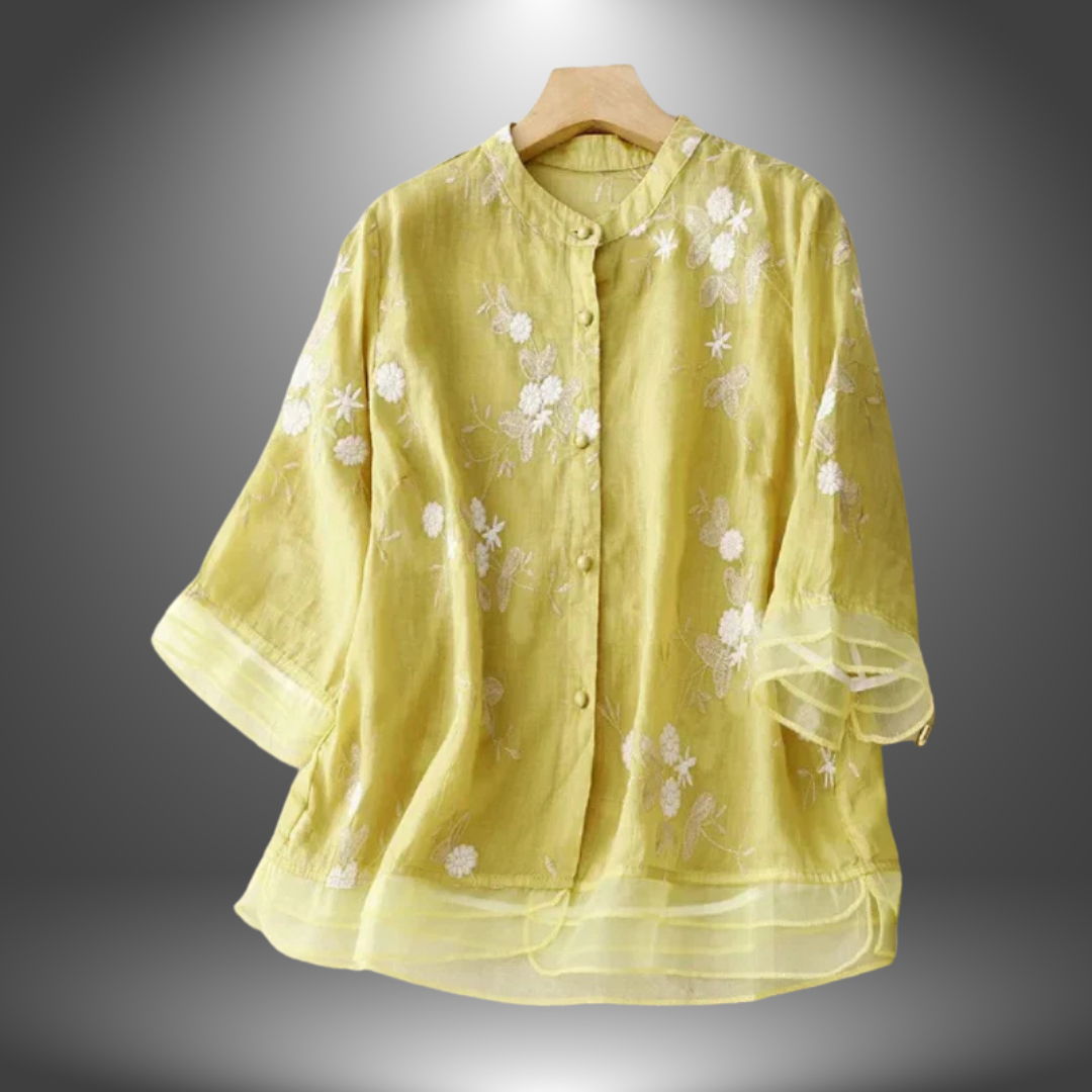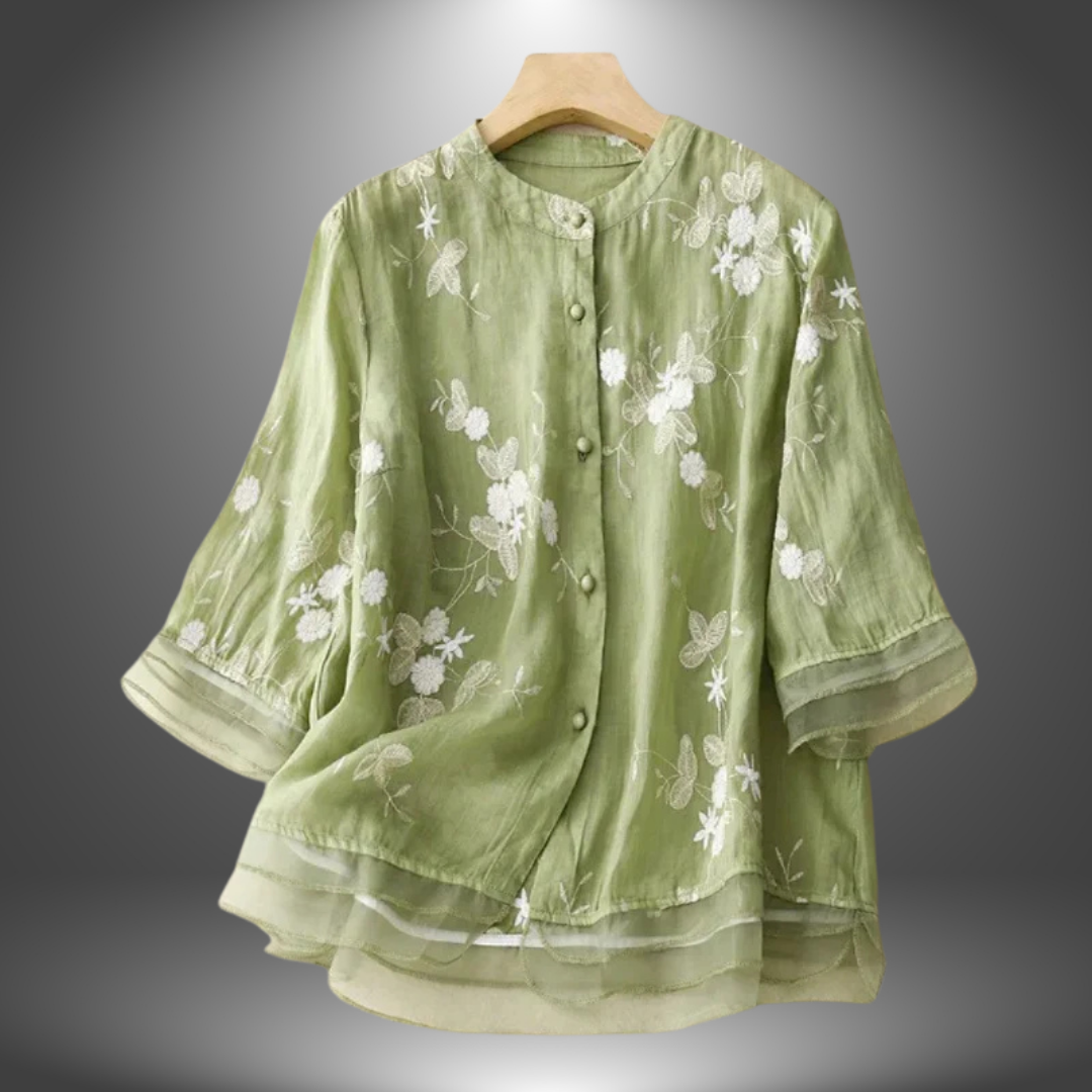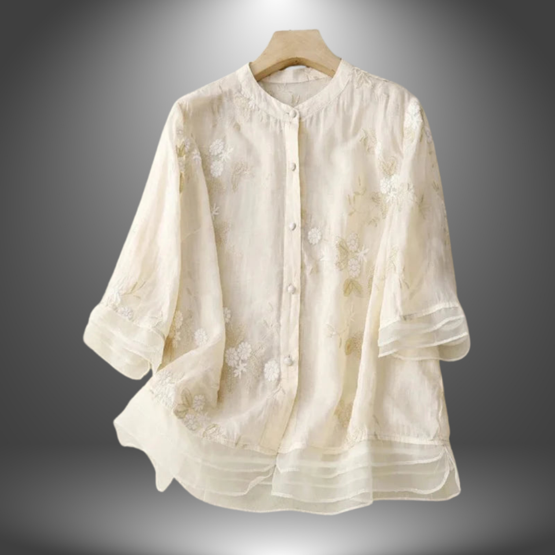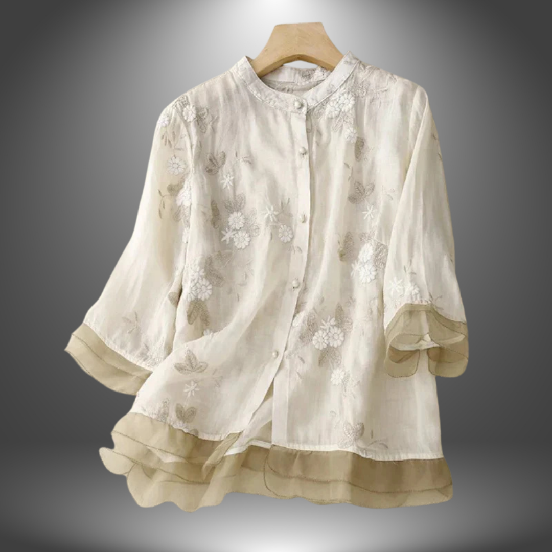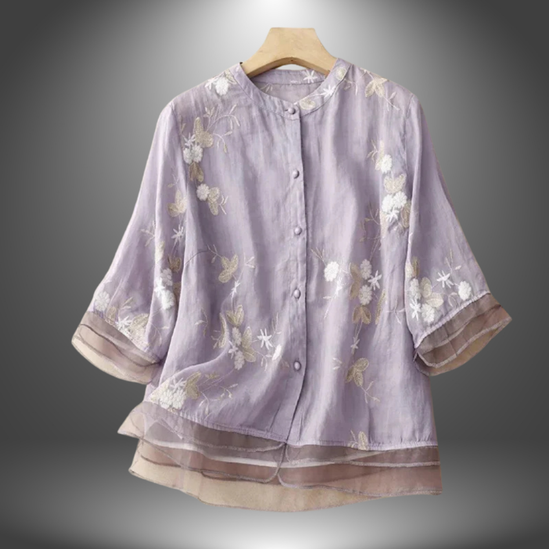 Questa camicetta ricamata in stile romantico è perfetta per creare outfit eleganti e delicati con un tocco naturale.