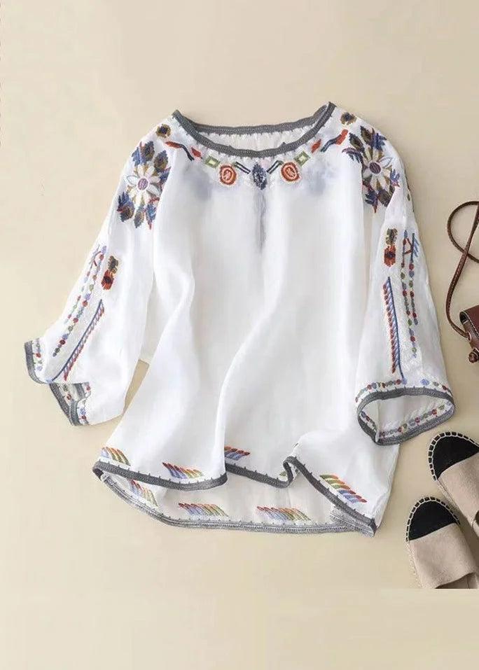 Questa blusa leggera con ricami colorati è l’ideale per uno stile etnico, elegante e rilassato.