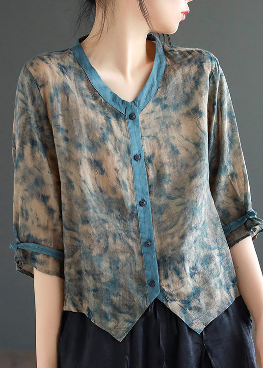 • Stampa tie-dye: Effetto acquerello nei toni del blu e beige