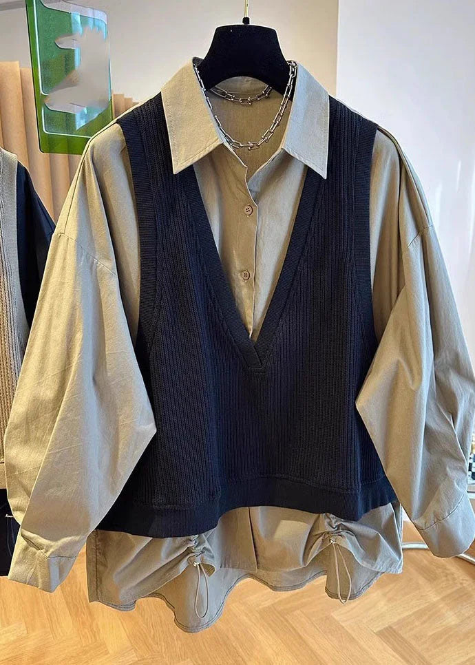 Questa camicia effetto layering con finto gilet integrato è perfetta per creare outfit stratificati senza sforzo.
