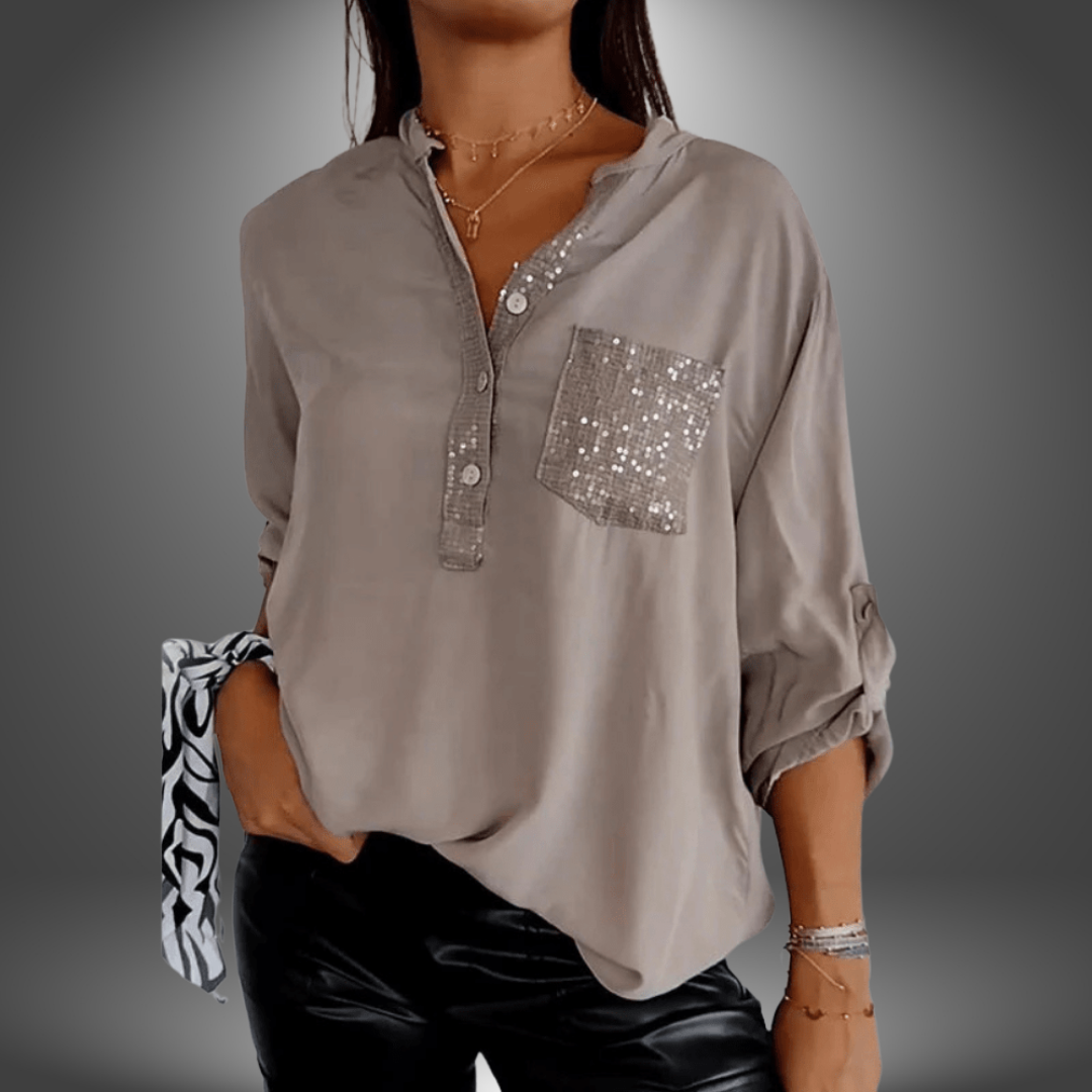 Questa camicia nera con dettagli glitterati è un mix perfetto di eleganza e personalità.