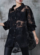 Questa camicia lunga in tessuto trasparente con motivo floreale tono su tono è un capo sofisticato e femminile.