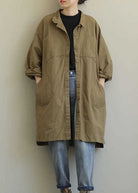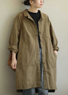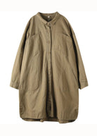 Questa camicia lunga in cotone color kaki è l’essenza dello stile rilassato e pratico.