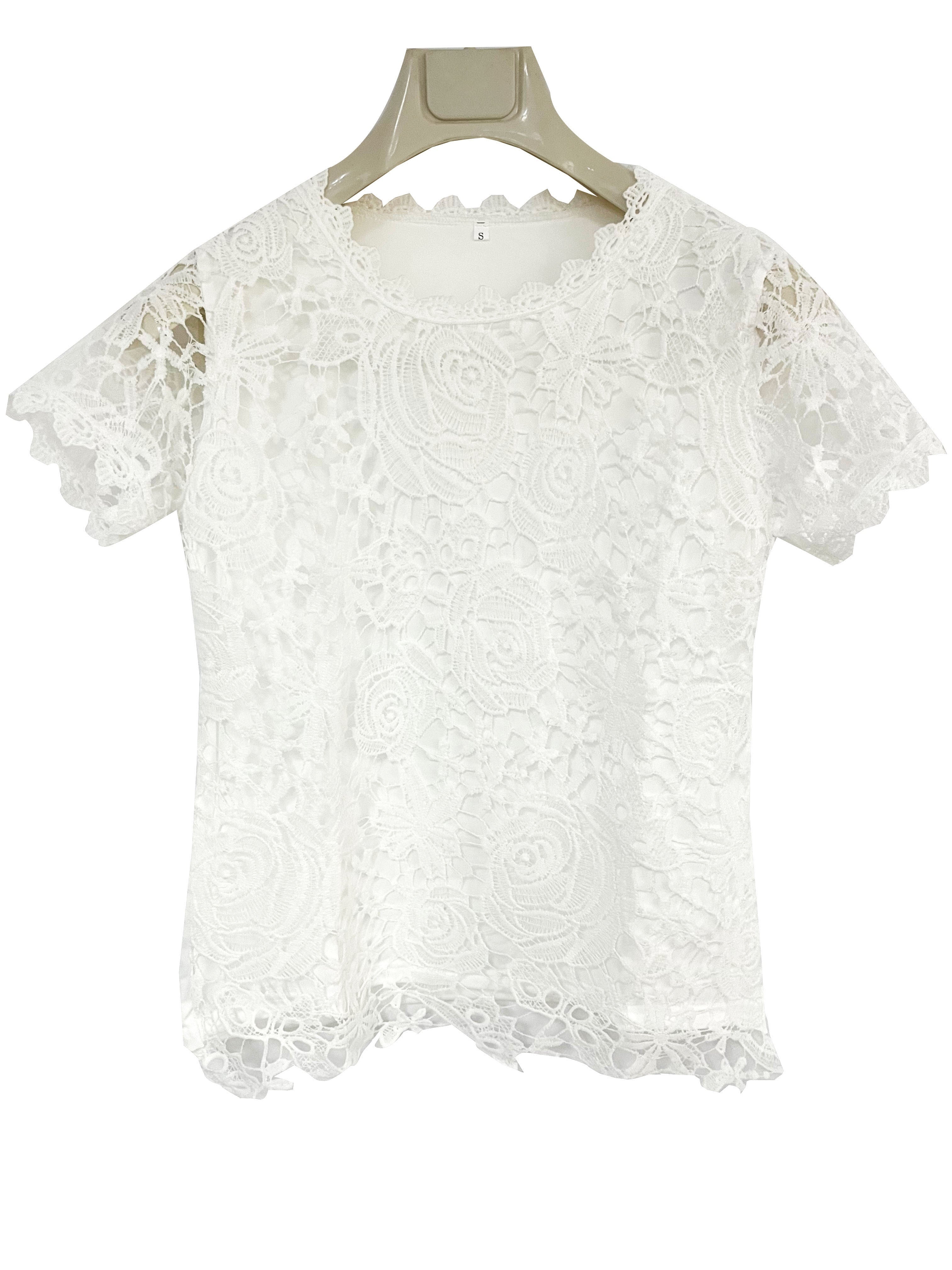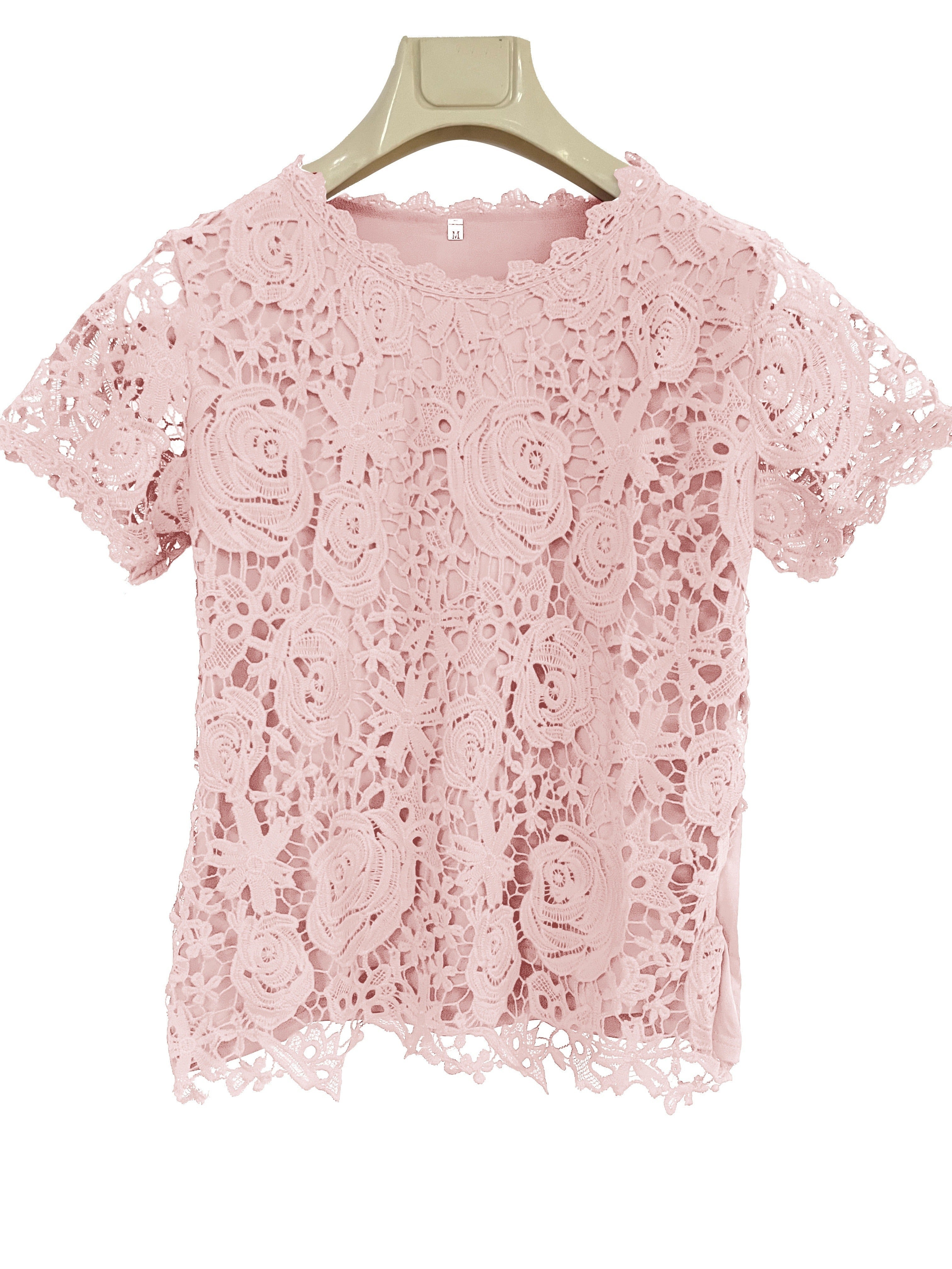 Maglia Donna in Pizzo | Poliestere Ricamato | Maniche Corte Romantiche