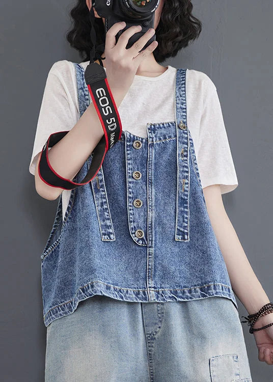 Questo top salopette in jeans è perfetto per creare outfit rilassati ma pieni di personalità.