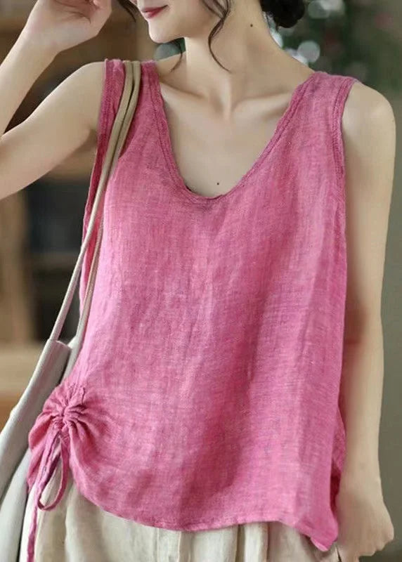 Questo top senza maniche in lino con dettaglio arricciato laterale è leggero, traspirante e perfetto per l’estate.