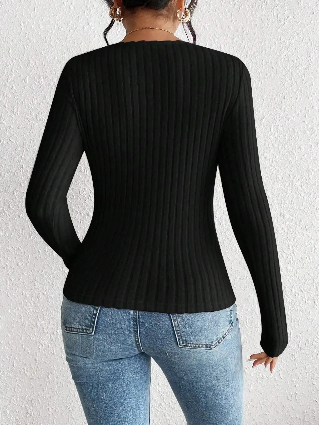 Top Maglia a Costine | Scollo Cuore | Aderente e Femminile