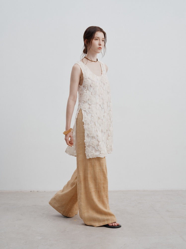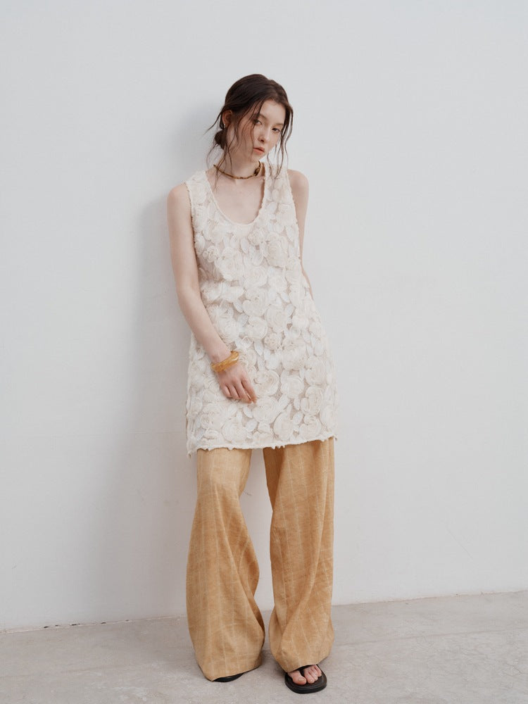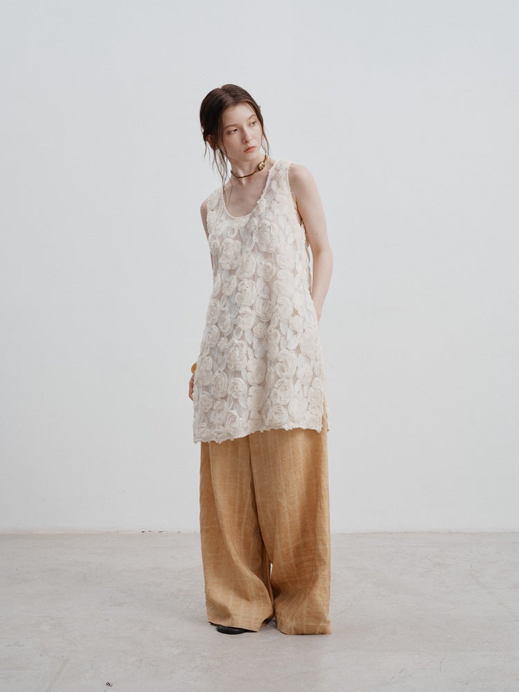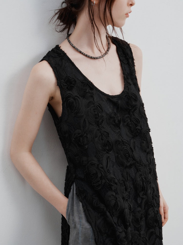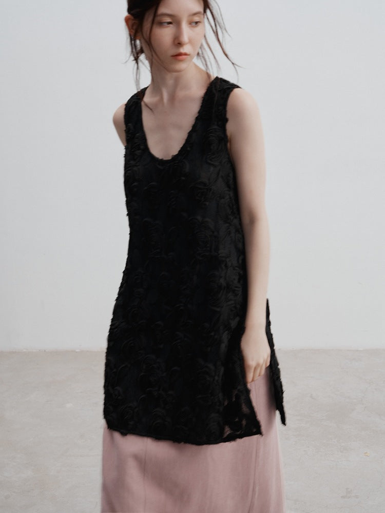 Design: Senza maniche, scollo rotondo, ricamo floreale in rilievo