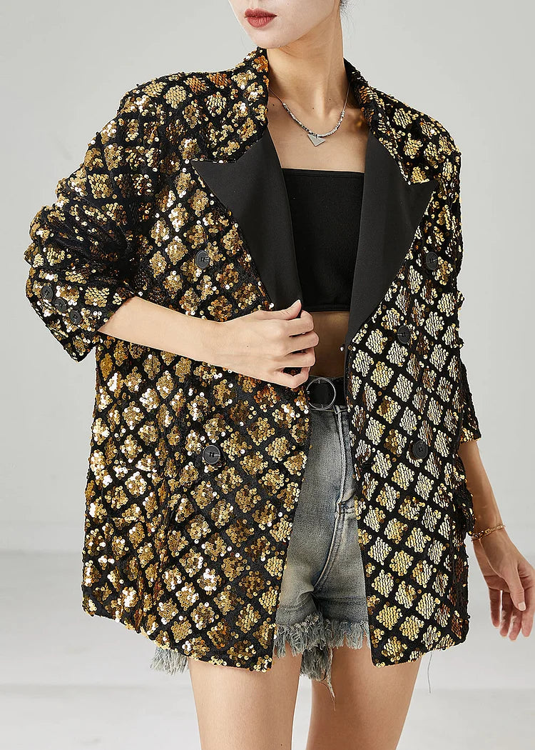 Il taglio oversize e il design scintillante lo rendono il capo perfetto per creare look audaci e sofisticati.