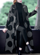 Questo cappotto lungo con stampa geometrica è la scelta perfetta per chi ama distinguersi anche nelle giornate più fredde.