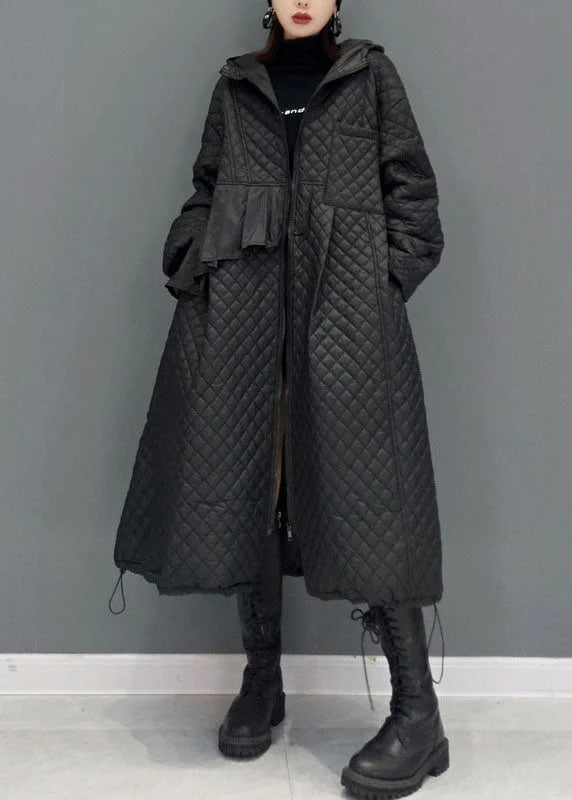 Questo cappotto lungo trapuntato con cappuccio è perfetto per affrontare le giornate fredde con un look deciso.