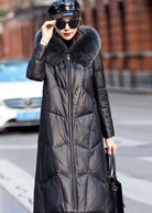 Questo cappotto lungo combina stile urbano e funzionalità grazie al suo design trapuntato, la finitura effetto pelle e il colletto in eco-pelliccia voluminosa.
