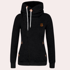 Questa felpa con collo alto e cappuccio è ideale per affrontare il freddo con stile.