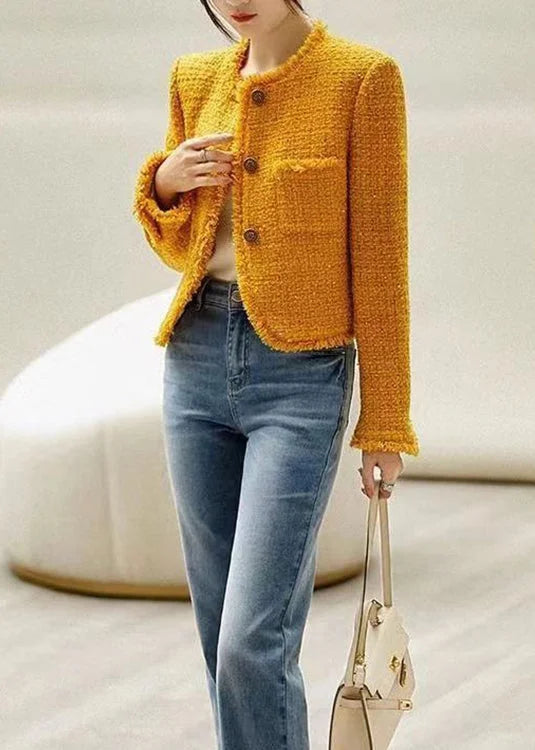 Il taglio corto e il design senza colletto la rendono moderna, raffinata e facile da abbinare.