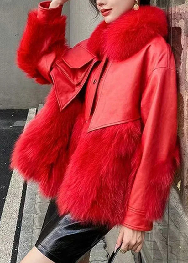 Questa giacca rossa effetto pelle con dettagli in eco-pelliccia è perfetta per creare un outfit di forte impatto.