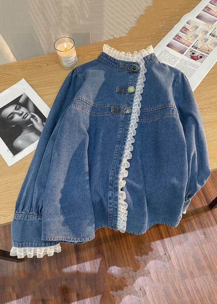 Questa giacca in denim con dettagli in pizzo unisce lo stile casual al fascino vintage.