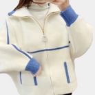 Questa giacca invernale con zip e design geometrico dona un tocco moderno e casual al tuo outfit.