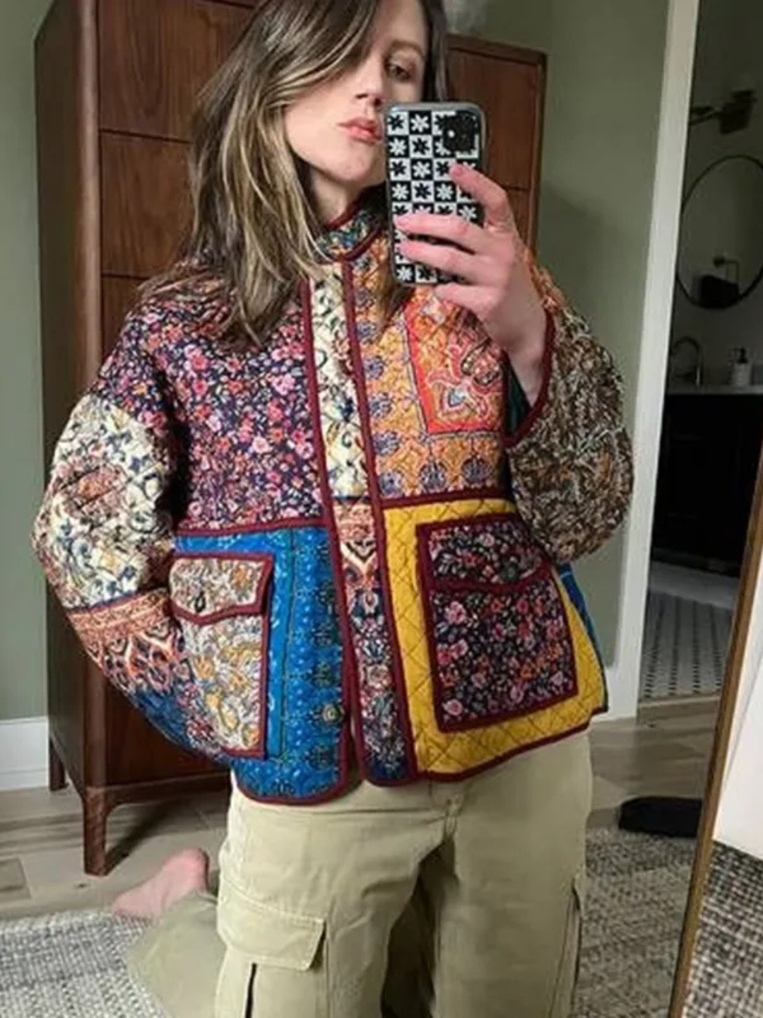 Questa giacca trapuntata in stile patchwork è perfetta per chi ama un look unico e creativo. Il mix di colori e fantasie rende questo capo un must-have per outfit casual e boho-chic.
