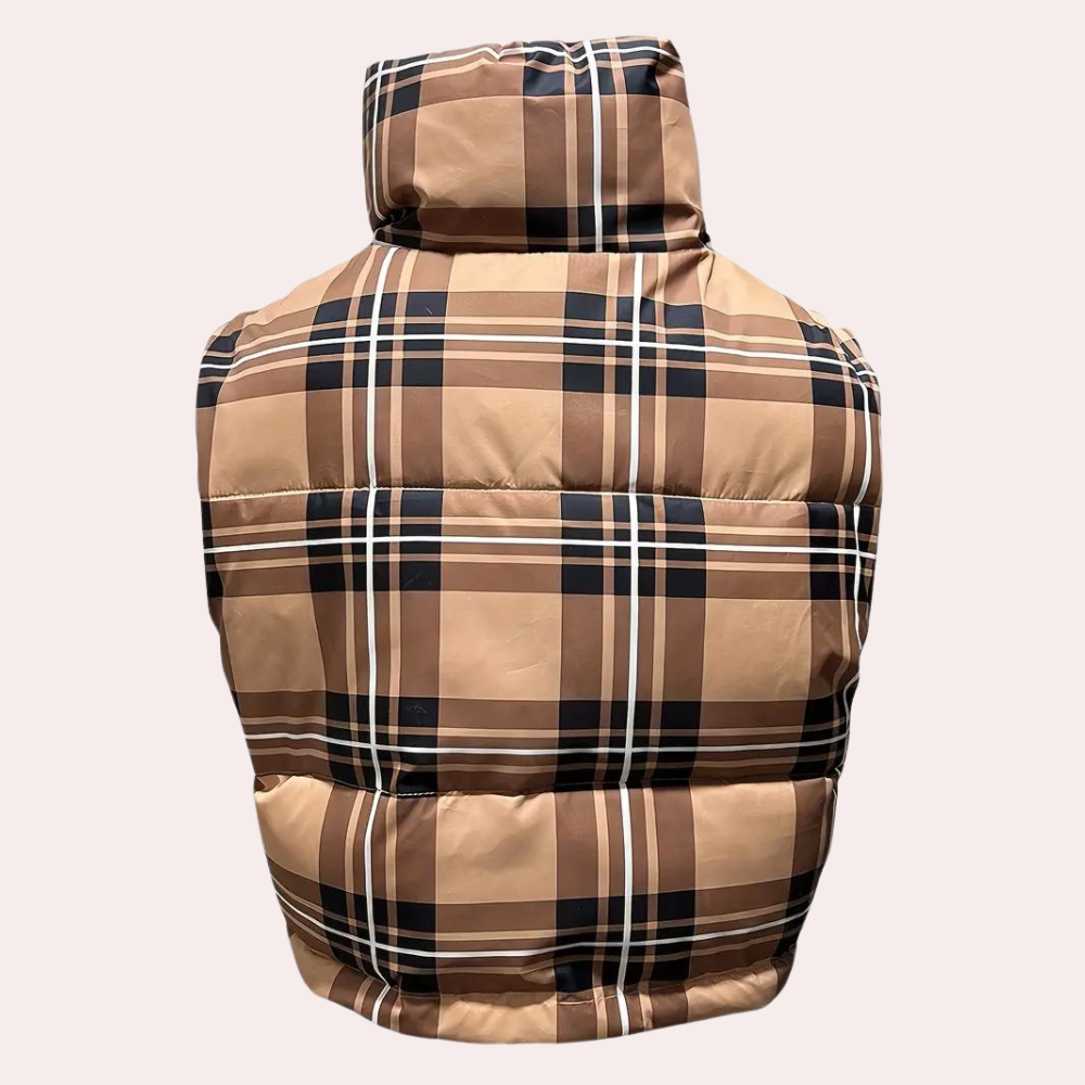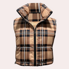 Questo gilet cropped imbottito a quadri è perfetto per un tocco casual e alla moda.