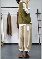 Questo gilet in maglia a trecce è perfetto per completare look casual e raffinati con un tocco vintage.