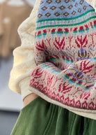 Questo gilet in maglia con motivi geometrici e multicolore è perfetto per dare un tocco vivace e cozy al tuo outfit.
