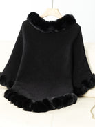 Mantella Elegante in Maglia | Bordi in Eco-Pelliccia | Calda e Raffinata