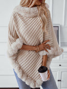 Questa mantella beige con bordi in eco-pelliccia è l'alleata perfetta per un look elegante e avvolgente.