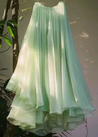 Questa gonna asimmetrica in chiffon dona movimento e freschezza ad ogni passo.