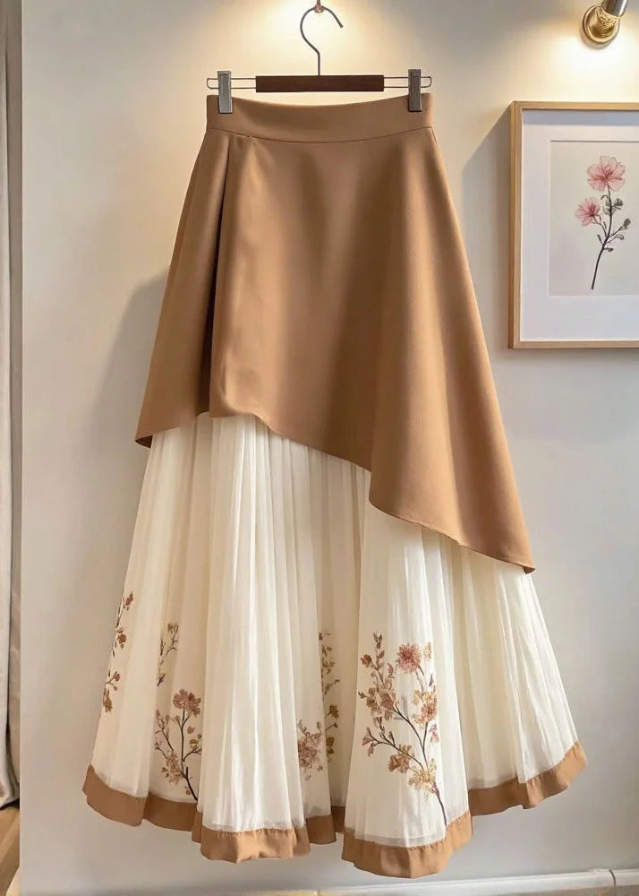 Questa gonna asimmetrica con sovrapposizione in chiffon ricamato è perfetta per uno stile romantico e sofisticato.