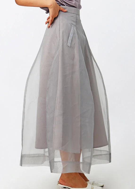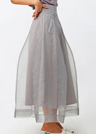 Questa gonna lunga con strato esterno trasparente crea un effetto leggero e romantico.