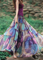 Questa gonna lunga a balze conquista con il suo motivo floreale sfumato e il tessuto leggero che si muove ad ogni passo.