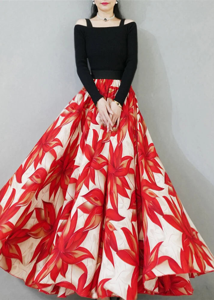 Questa gonna lunga a fantasia floreale colpisce per il suo design vivace e l'effetto movimento.